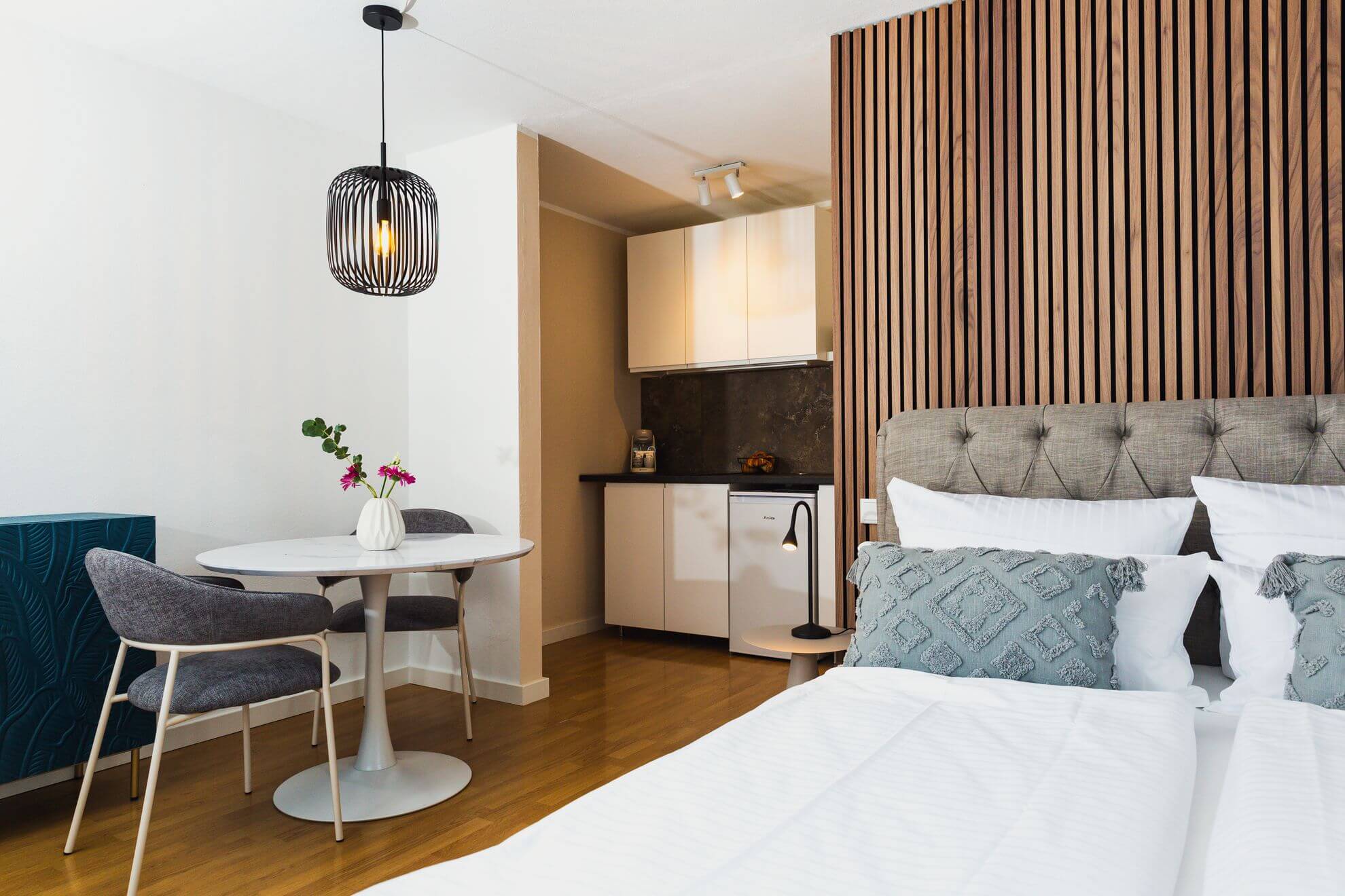 We are pleased to introduce you to our newly renovated serviced apartments “Marie” – a place that combines tradition and modern comfort. With great attention to detail, we have renovated our rooms from the ground up to offer you an all-round pleasant stay.